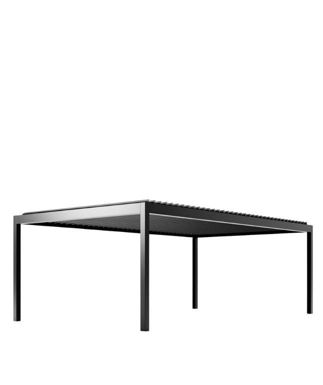 Das System Nuun Eco wurde für maximalen Benutzerkomfort entwickelt. Die verstellbaren Lamellen ermöglichen eine präzise Steuerung von Licht und Luftzufuhr, während das diskret integrierte Entwässerungssystem die Terrasse selbst bei starkem Regen schützt. Die Pergola lässt sich perfekt mit Zubehör wie Verglasungen, Screens, LED-Beleuchtung oder Wettersensoren kombinieren.